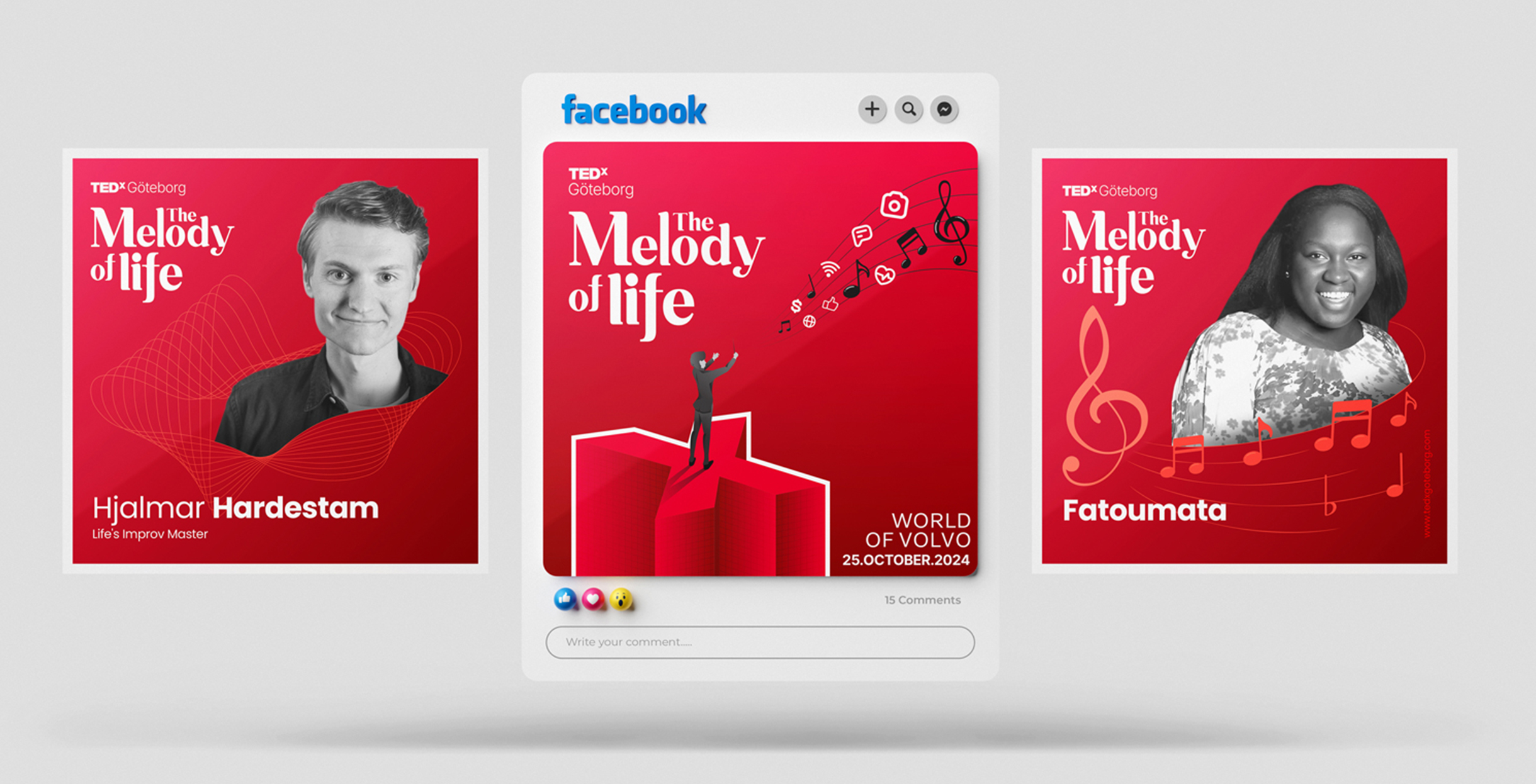 For TEDx Göteborg, I was responsible for the graphic design and visual identity of the event “The Melody of Life.”